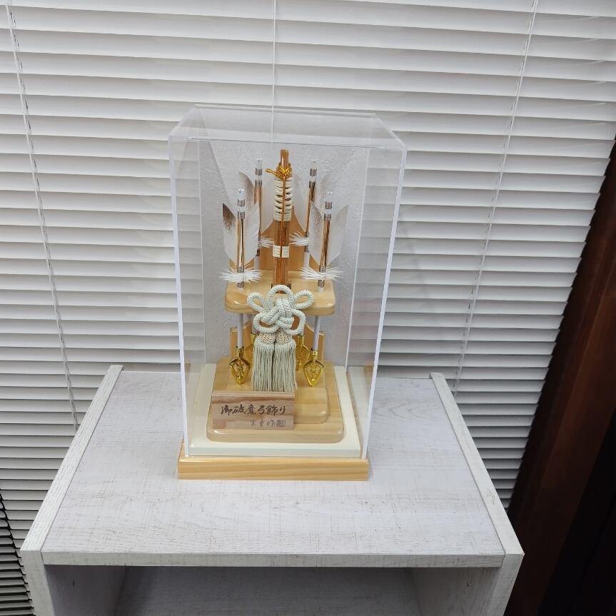 アクリルケースに入った、8号サイズの破魔弓です。