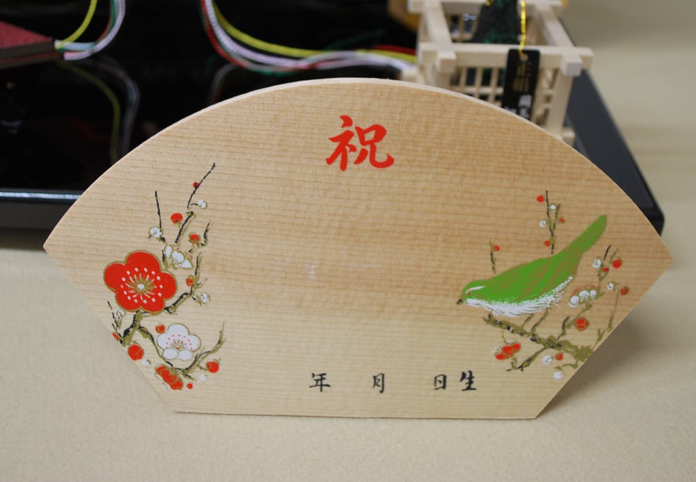 オルゴール付き木製お名前札とお手入れセットをお付けいたします。