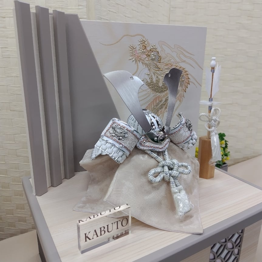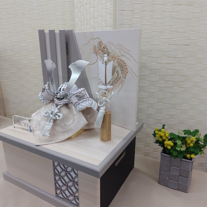 上品さの中に端午の節句らしい凛とした印象も感じられる兜飾りです。