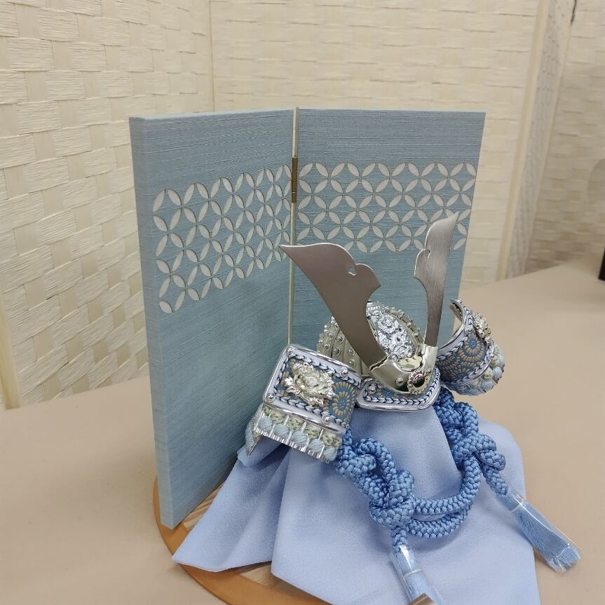 コンパクト兜飾り 五月人形|淡色カラー 合せ鉢・印伝仕様 ナチュラルインテリア 初節句
